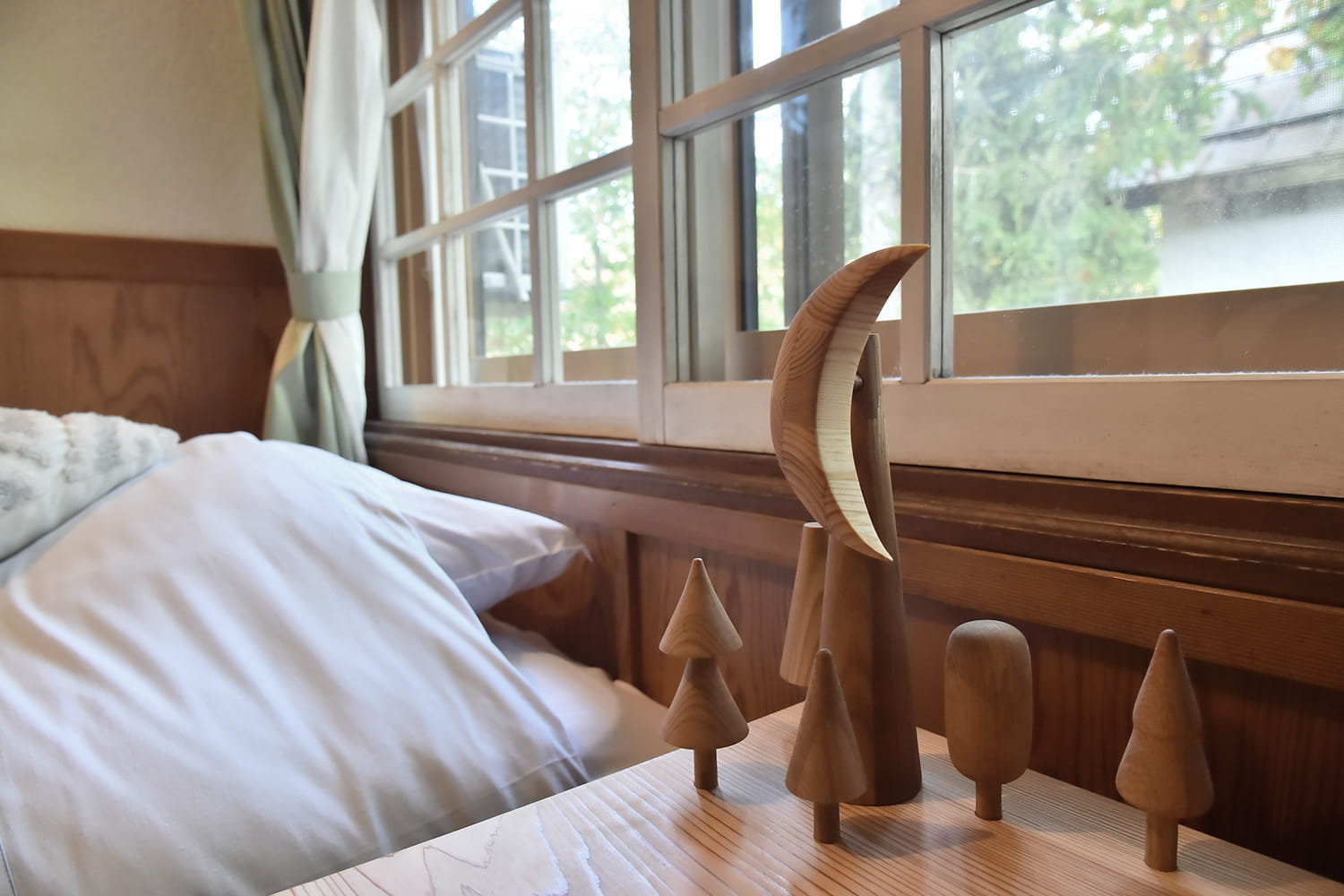 白馬村で活動するアーティストによる月や木をモチーフとした、温かみのあるハンドメイド家具。