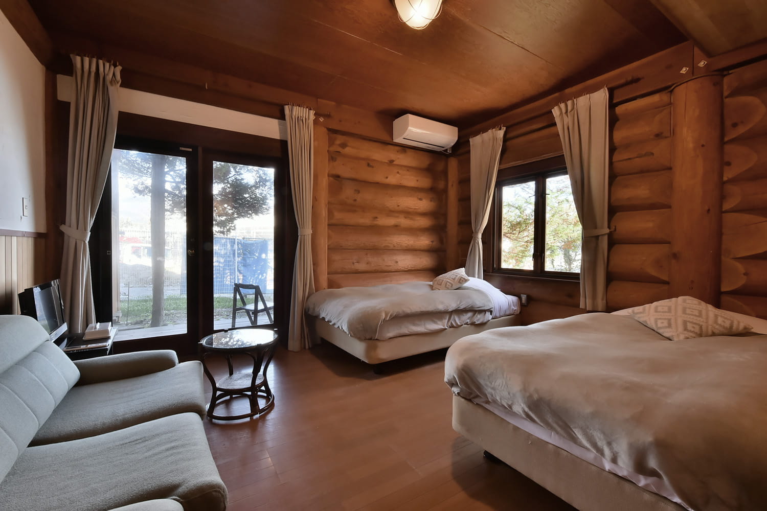 IH stove / Fridge and freezer / Microwave / Kettle / Toaster / Glasses / Plates and bowls / Silverwares / Hair dryer / Laundry (400 yen) / Sauna (additional charge) / Wifi / Gas heater / Chair or sofa