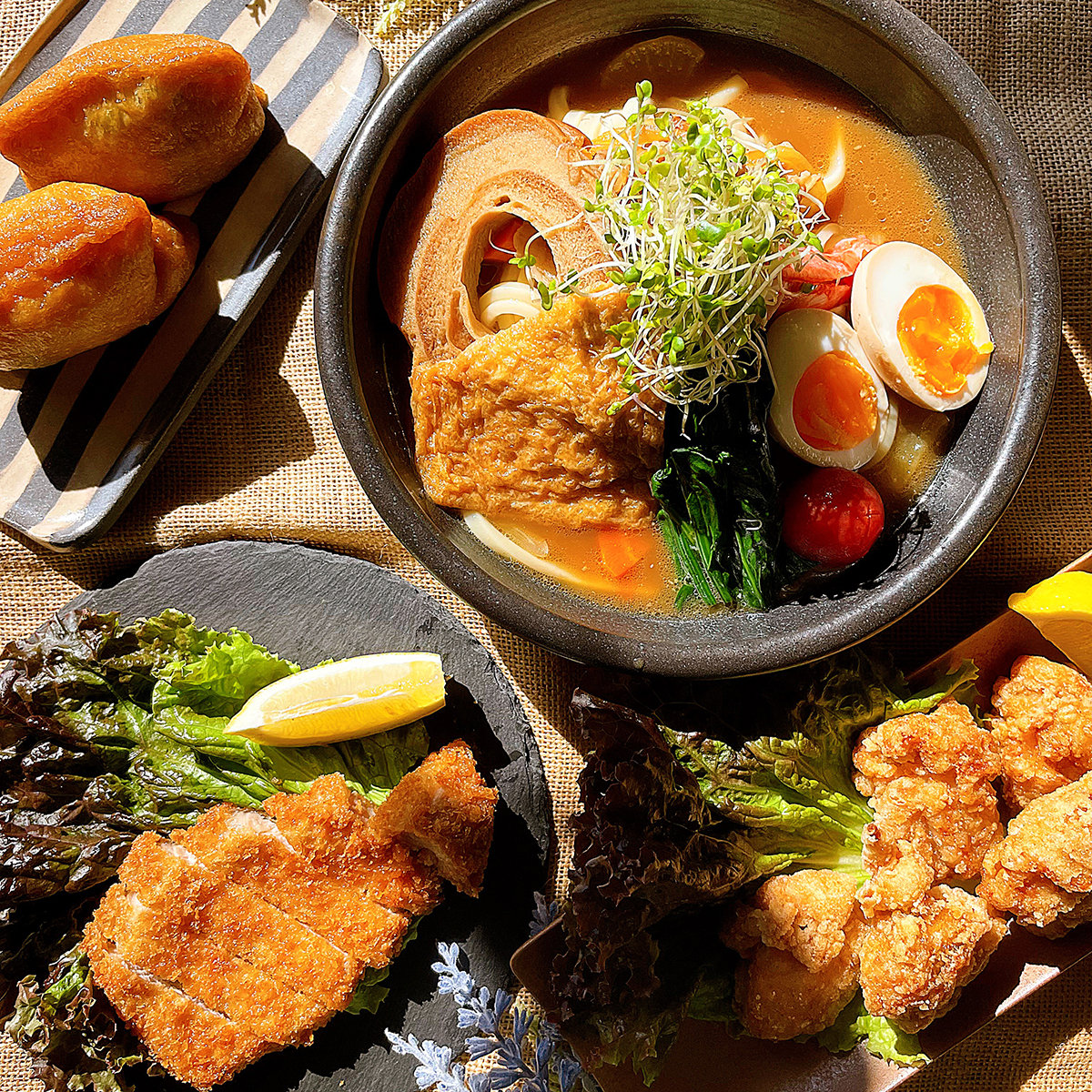 We generously use Shinshu ingredients, such as free-range pork raised in the open fields of Azumino; Hakuba-produced Shinshu salmon; raw honey from Northern Shinshu; and seasonal vegetables.